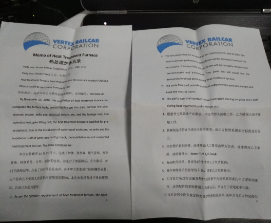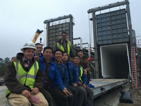 本工程9月20日接到VRC郵件正式通知,要求25日到達威爾明頓,現場確認地基數據后,計劃10月3日開始澆筑基礎地基,我公司按照對方計劃安排購買了9月25日王振廣到達、其余5人10月7日到達的機票,由于7日颶風影響及土建承包商拖延工期致使澆筑時間由原計劃10月3日澆筑拖延到10月18日,到10月20日現場施工才開始進行,公司團隊現場克服種種困難想出多種辦法追趕工期,終于在11月15日按照原計劃先期回國3人,23日完成了部分動作及點火調試,由于VRC公司沒有成品油罐車及需要建造防雨棚無法進行帶料熱調試,我公司人員于11月25日回國。