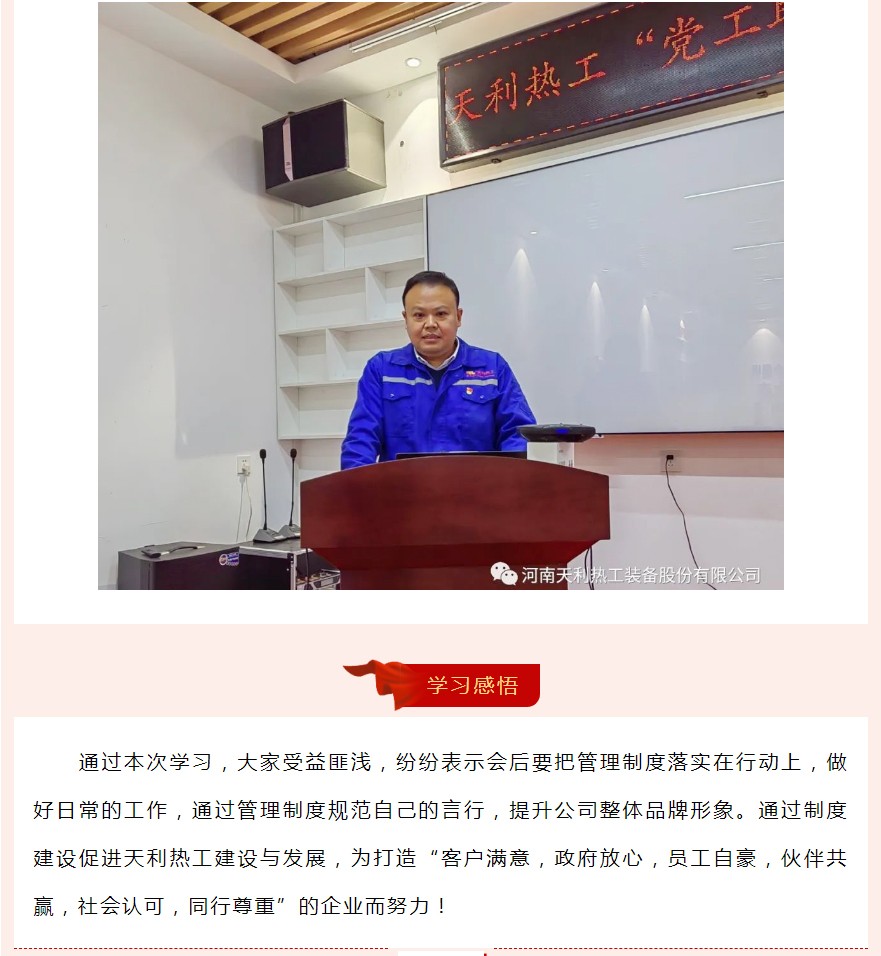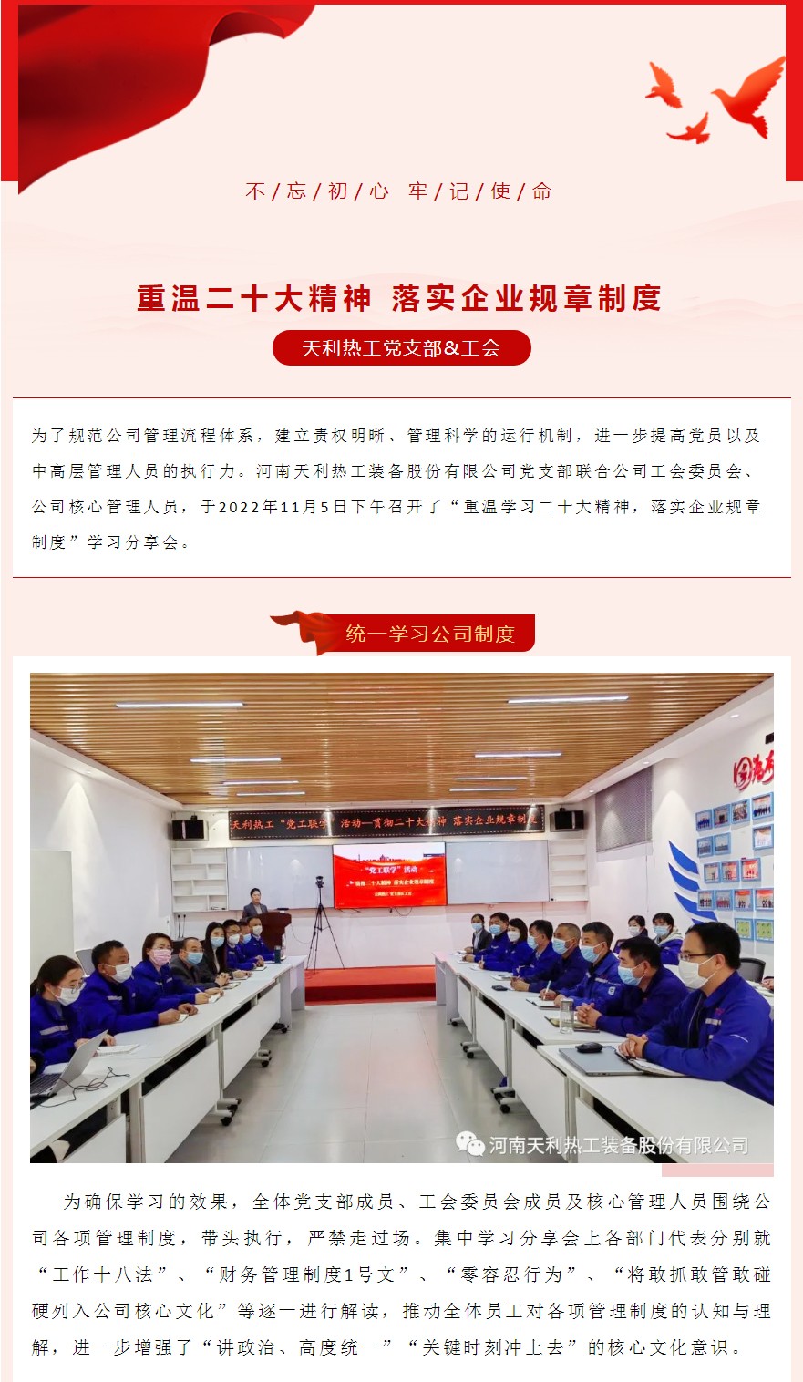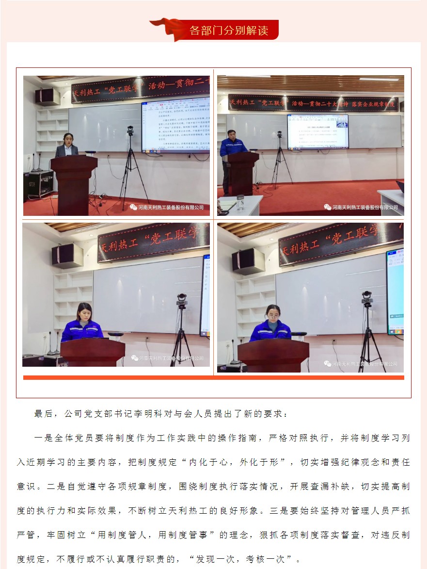 天利熱工丨“黨工聯學”活動—貫徹二十大精神 落實企業規章制度