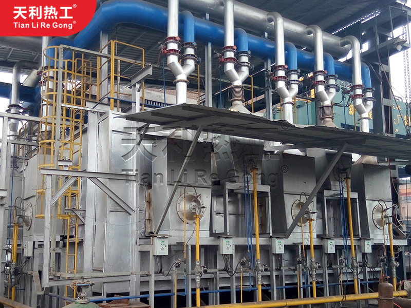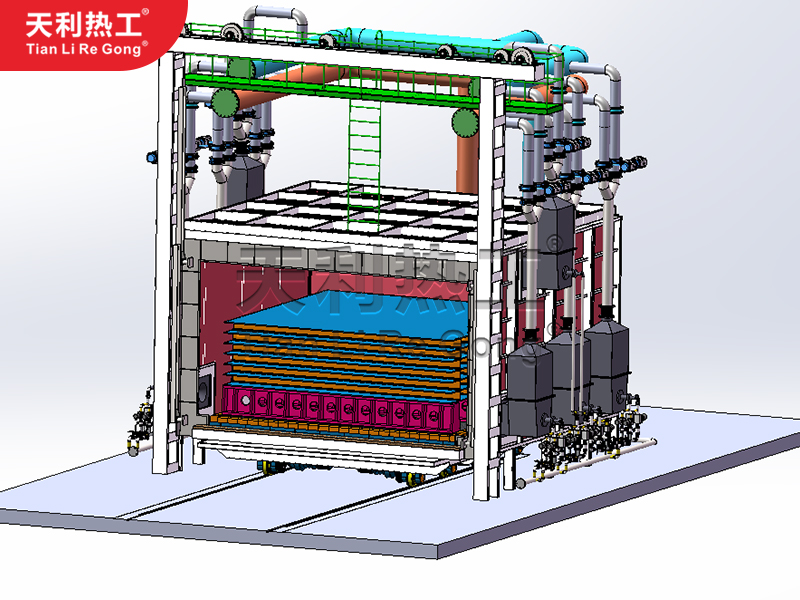 “RQT3-4000-12蓄熱式臺車燃氣加熱爐”是我公司研制的用于大型封頭類零件的加熱熱處理工藝的一種新型大型設備,具有密封性能好、化控溫、NOX化合特排放符合環保要求的特點,能夠大幅提高生產效率、降低人工成本、實現綠色節能的效果。NOx超低排放≤120mg(不加任何脫硝設備);實現了實用范圍600-1250度內超高爐溫均勻性±6℃;復合保溫工藝及迷宮式密封結構實現煙氣氧含量6%左右。